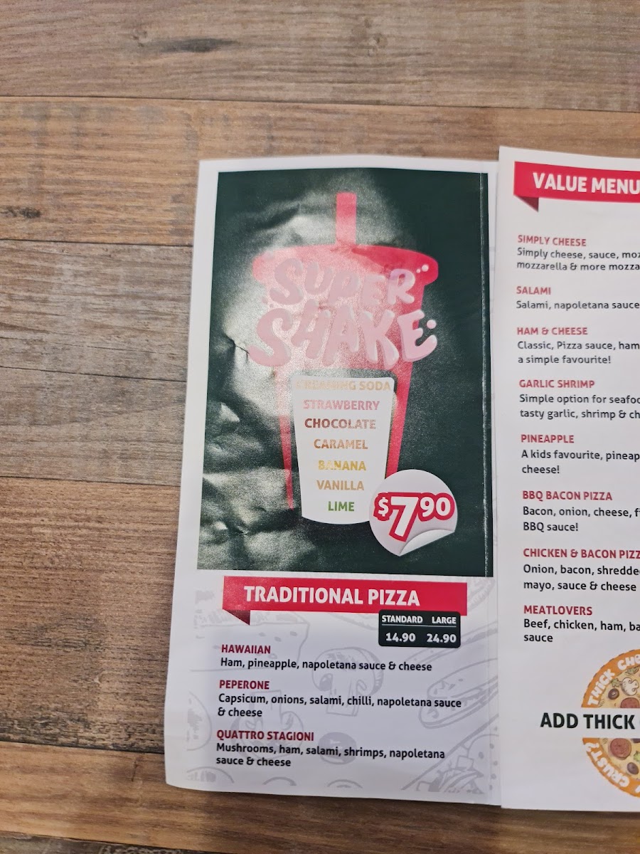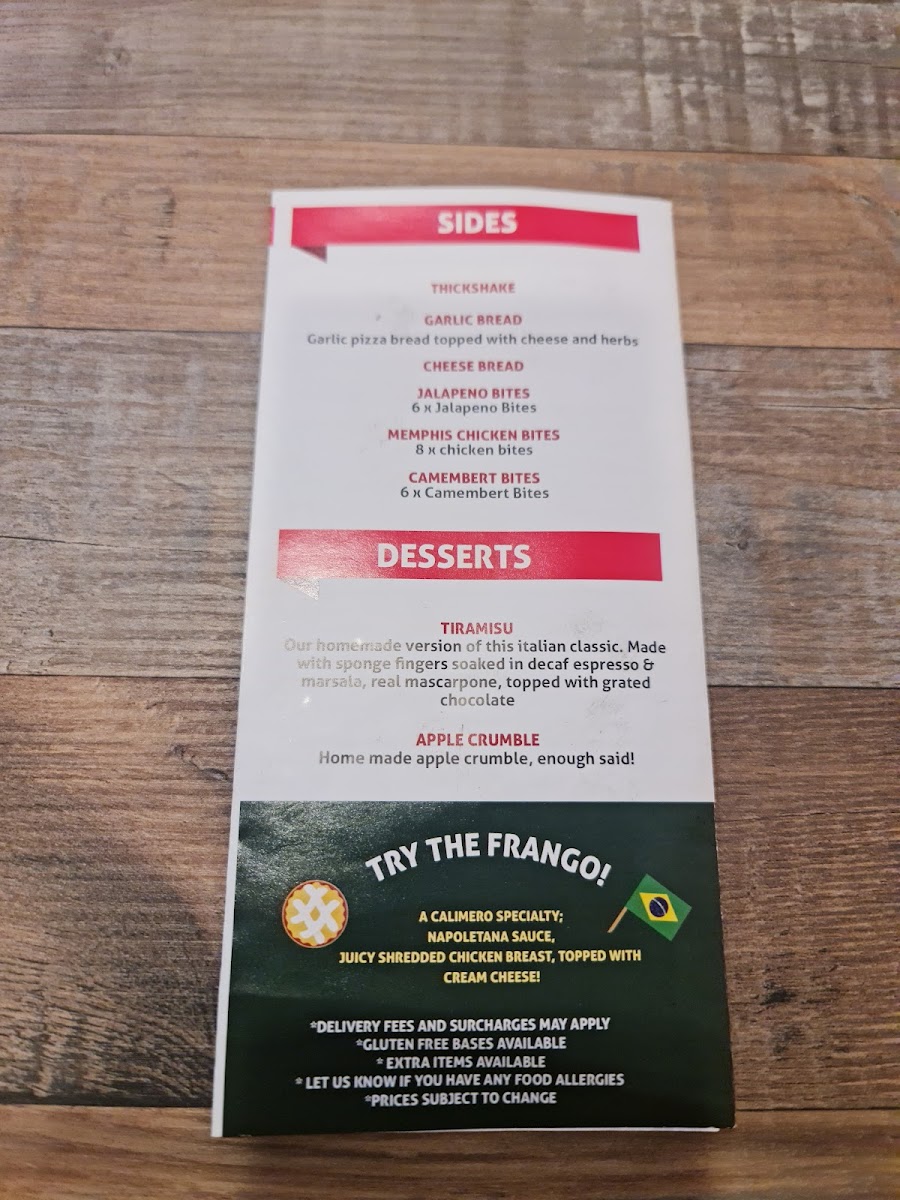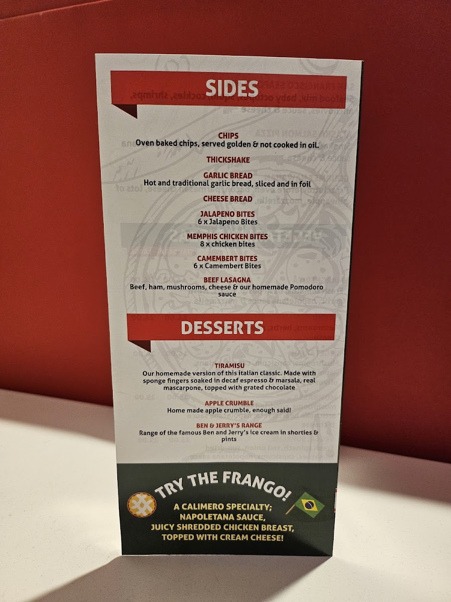 The menu at Calimero Pizza in Devonport offers a diverse and flavorful selection that caters to all tastes, from traditional favorites to inventive gourmet options. Their Traditional Pizzas include classics like Hawaiian Pizza and Peperone Pizza, with rich toppings at reasonable prices. The Gourmet Pizzas shine with choices like Calimero Pizza and New York Pizza, each brimming with unique ingredients and bold flavors. For a more refined experience, their More Gourmet section features Prosciutto Pizza, San Francisco Seafood Pizza, and the luxurious Alaska Salmon Pizza. For vegetarians, there’s a delightful array of pizzas like Margherita Pizza, Funghi Pizza, and Veggie Supreme Pizza. The Brazilian Specials are a highlight, offering a taste of South America with options such as Frango Catupiry and the tangy Calabresa Acebolada. With such a wide range of pizza styles, Calimero Pizza ensures there's something for everyone to enjoy, whether you prefer a simple classic or a gourmet creation.