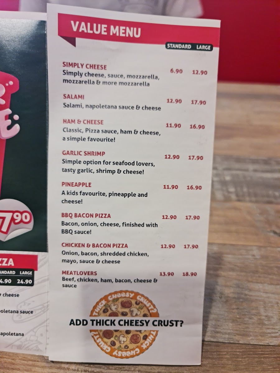 Topped with fresh capsicum, zesty onions, salami, chilli flakes, rich Napoletana sauce, and melted cheese. This pizza comes in two sizes: standard (six slices) and large (eight slices). Customise with extra toppings and a stuffed crust, and enjoy dietary substitutions such as a gluten-free base.